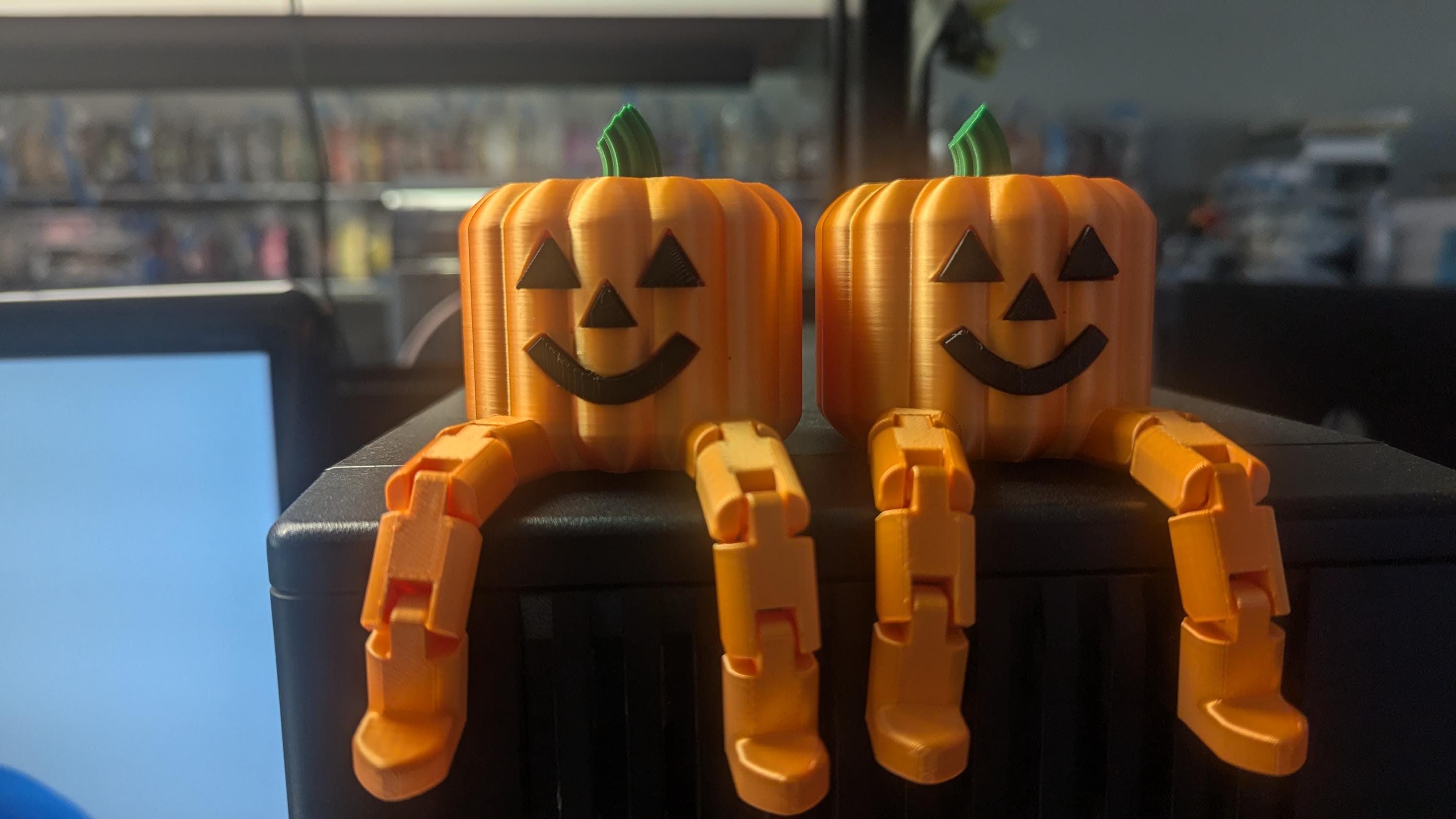 Bring some Halloween fun to your desk or bookshelf with this adorable Pumpkin Pal. His articulated legs hang down like he's ready to jump off and find an adventure.