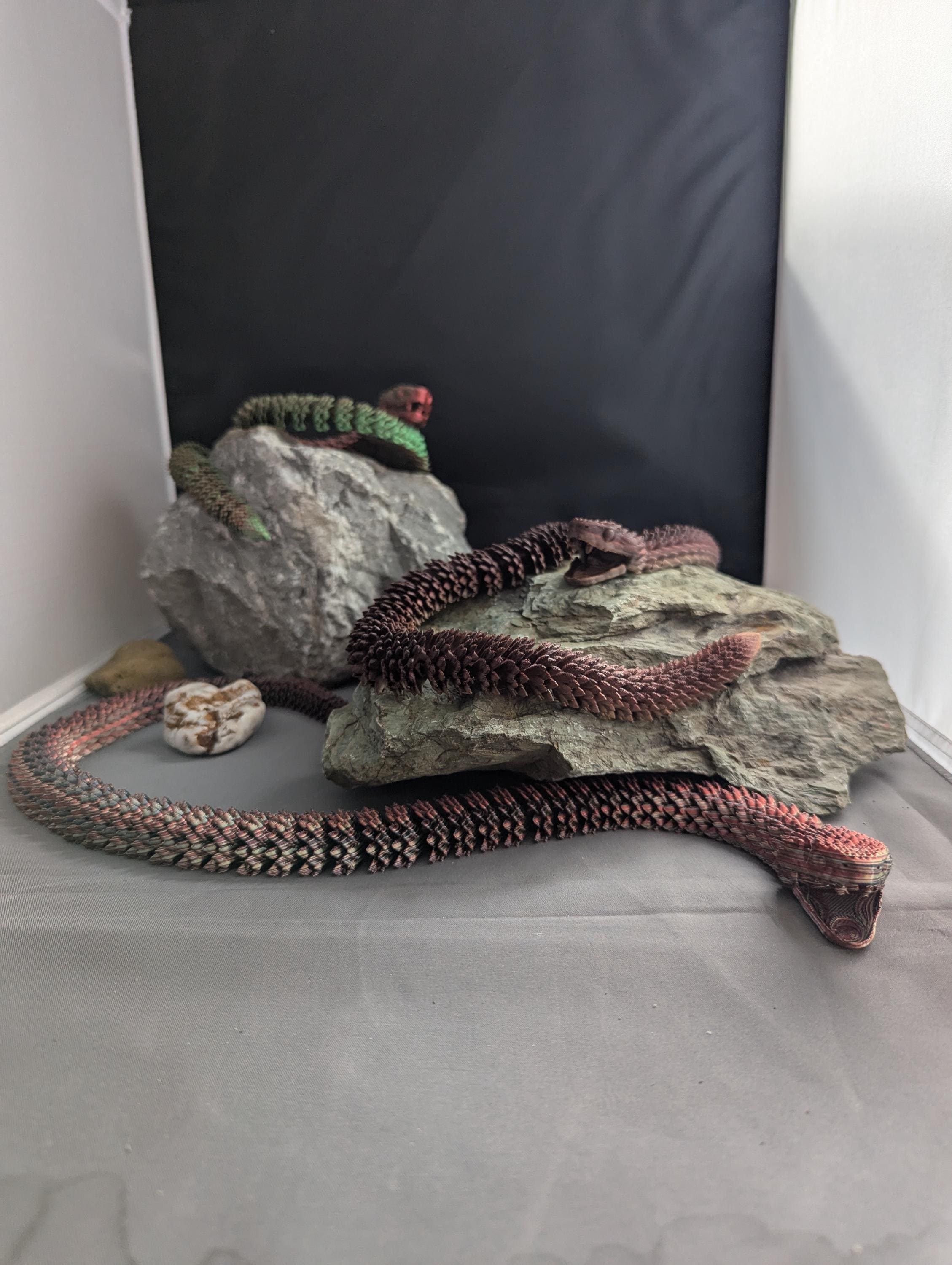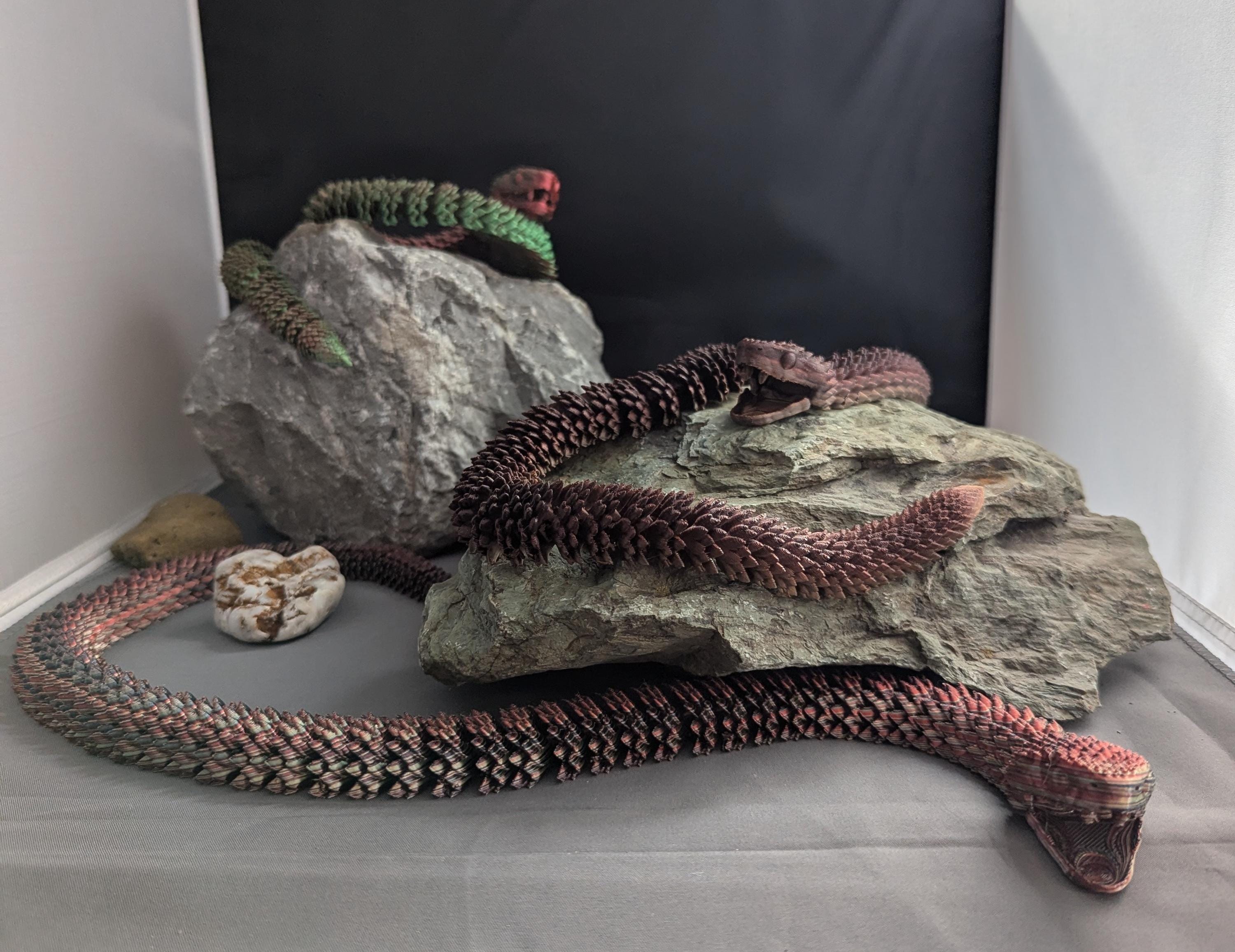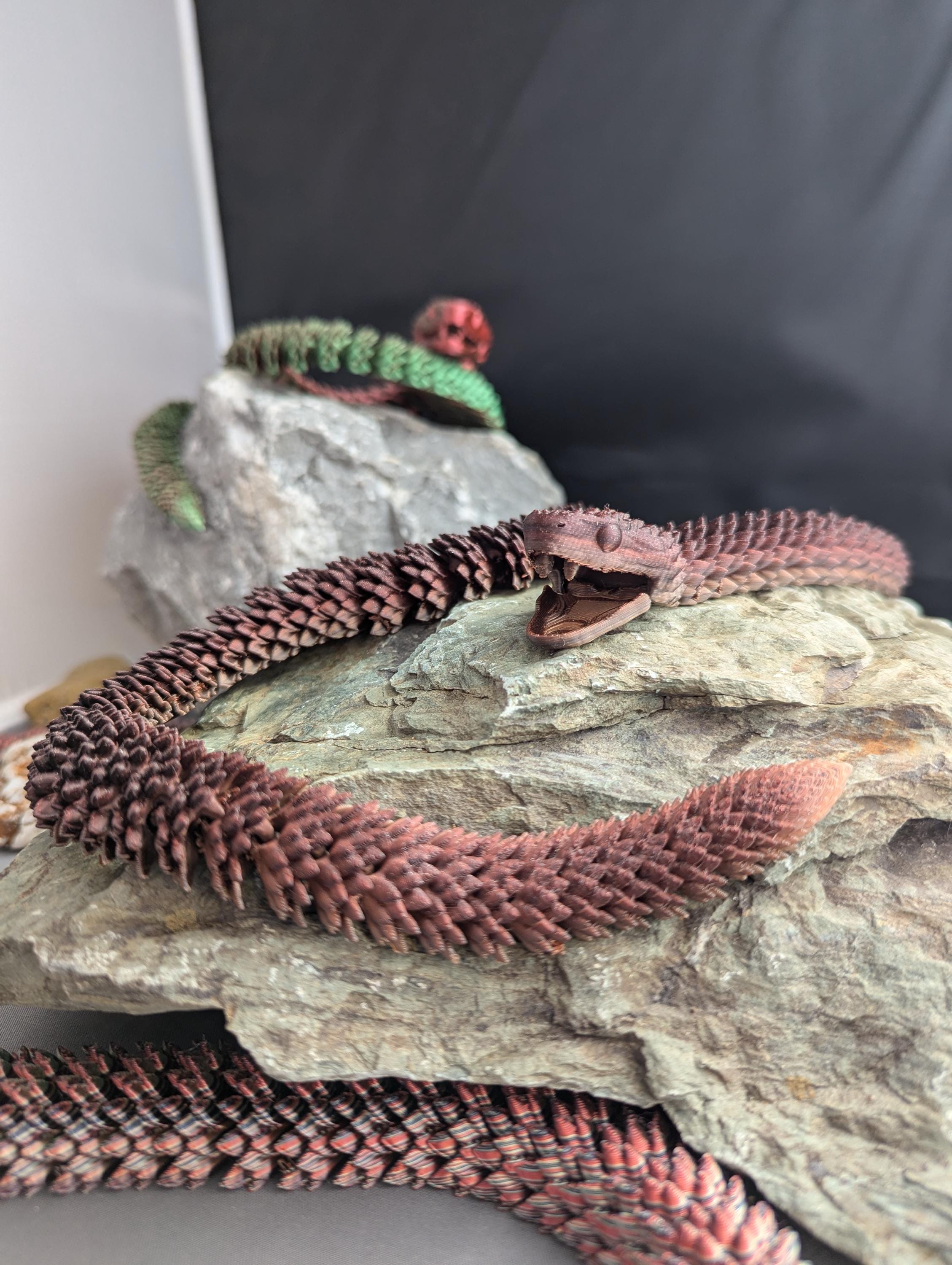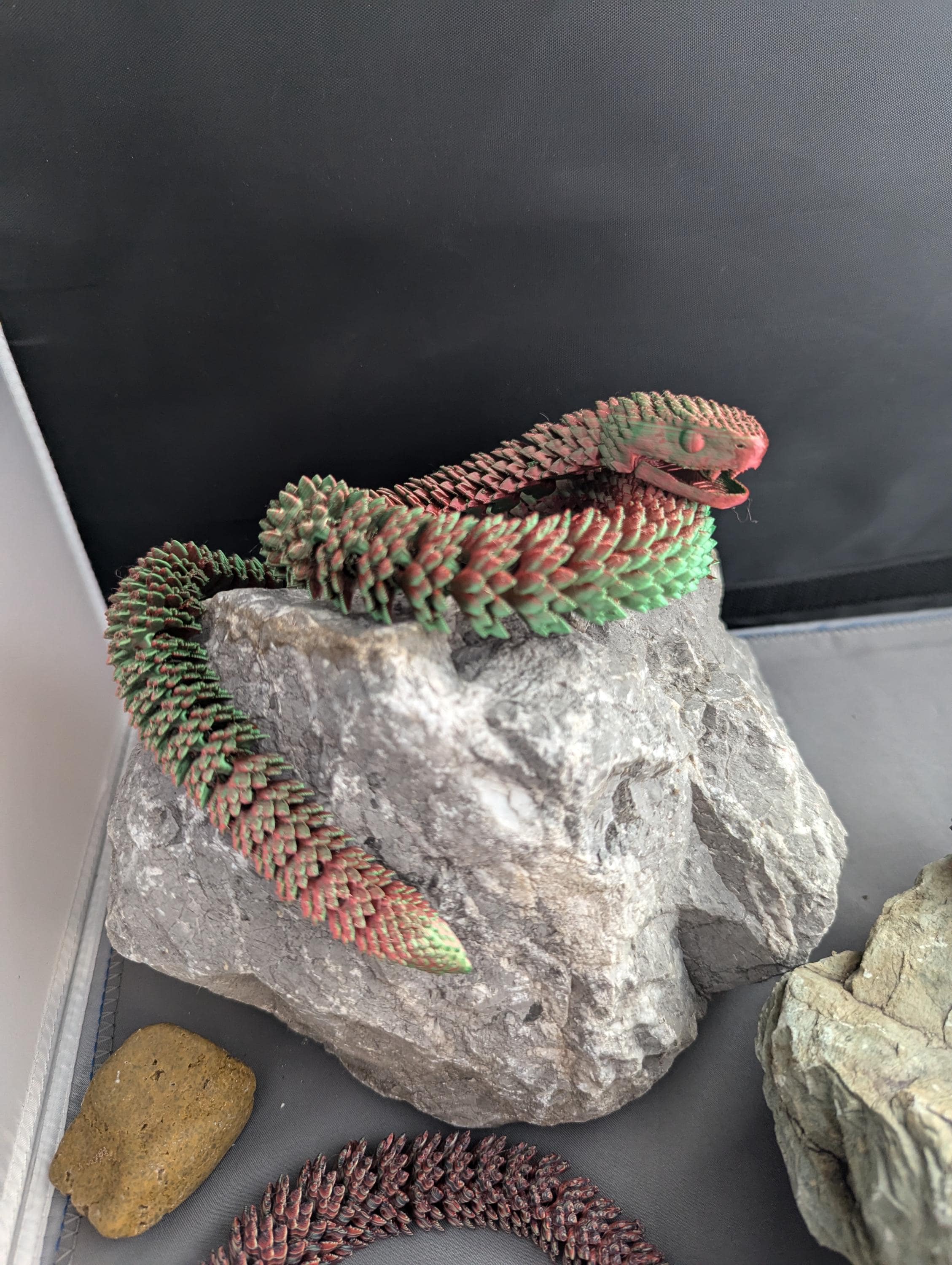 This snake is spiky! Be prepared for a rough texture and highly detailed scales. Highly posable and lots of fun.