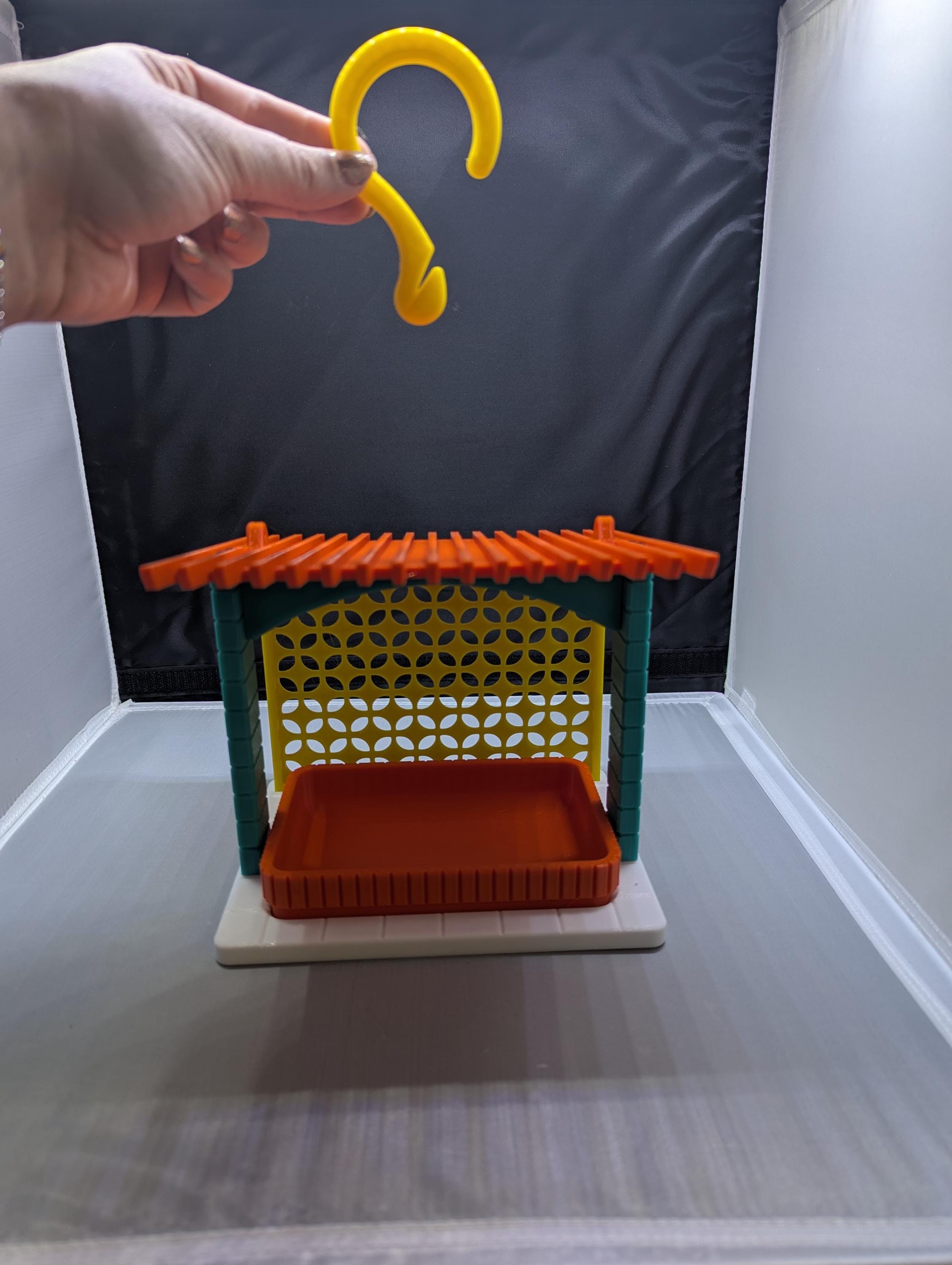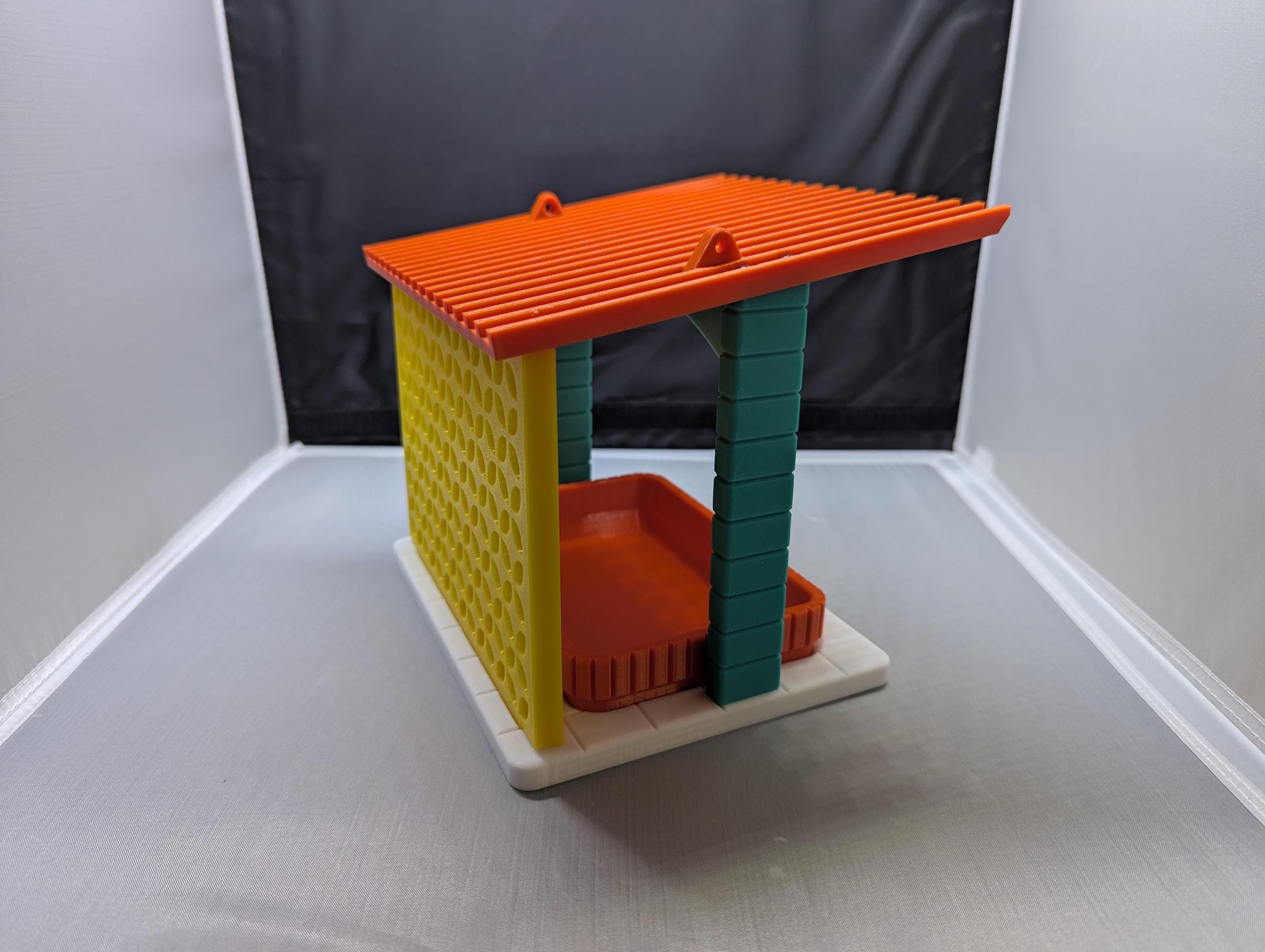 Unique retro-style bird feeder that adds color and fun to any yard or garden. Fill the removable try with seeds and watch your feathered friends gather.
