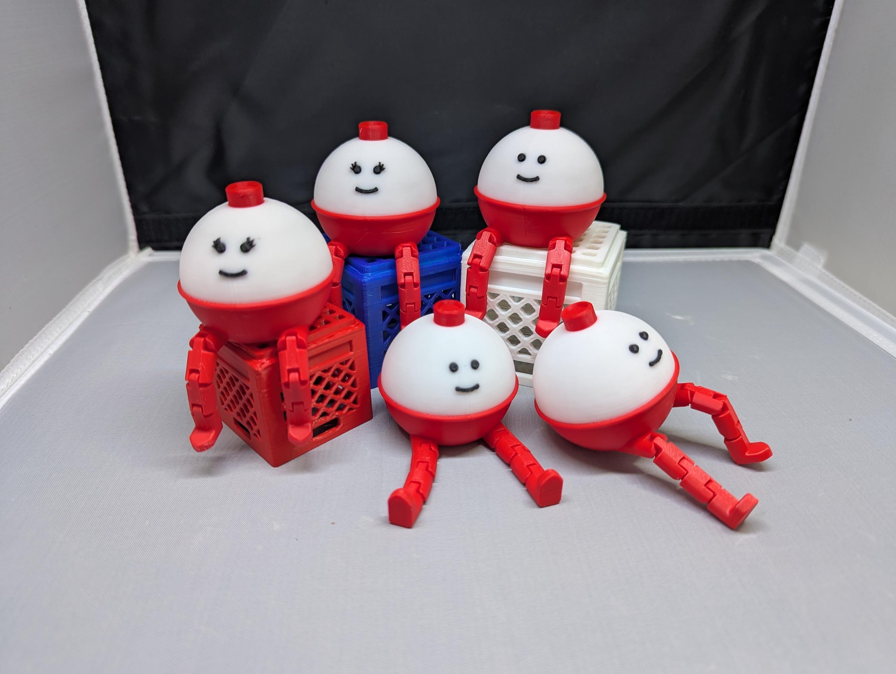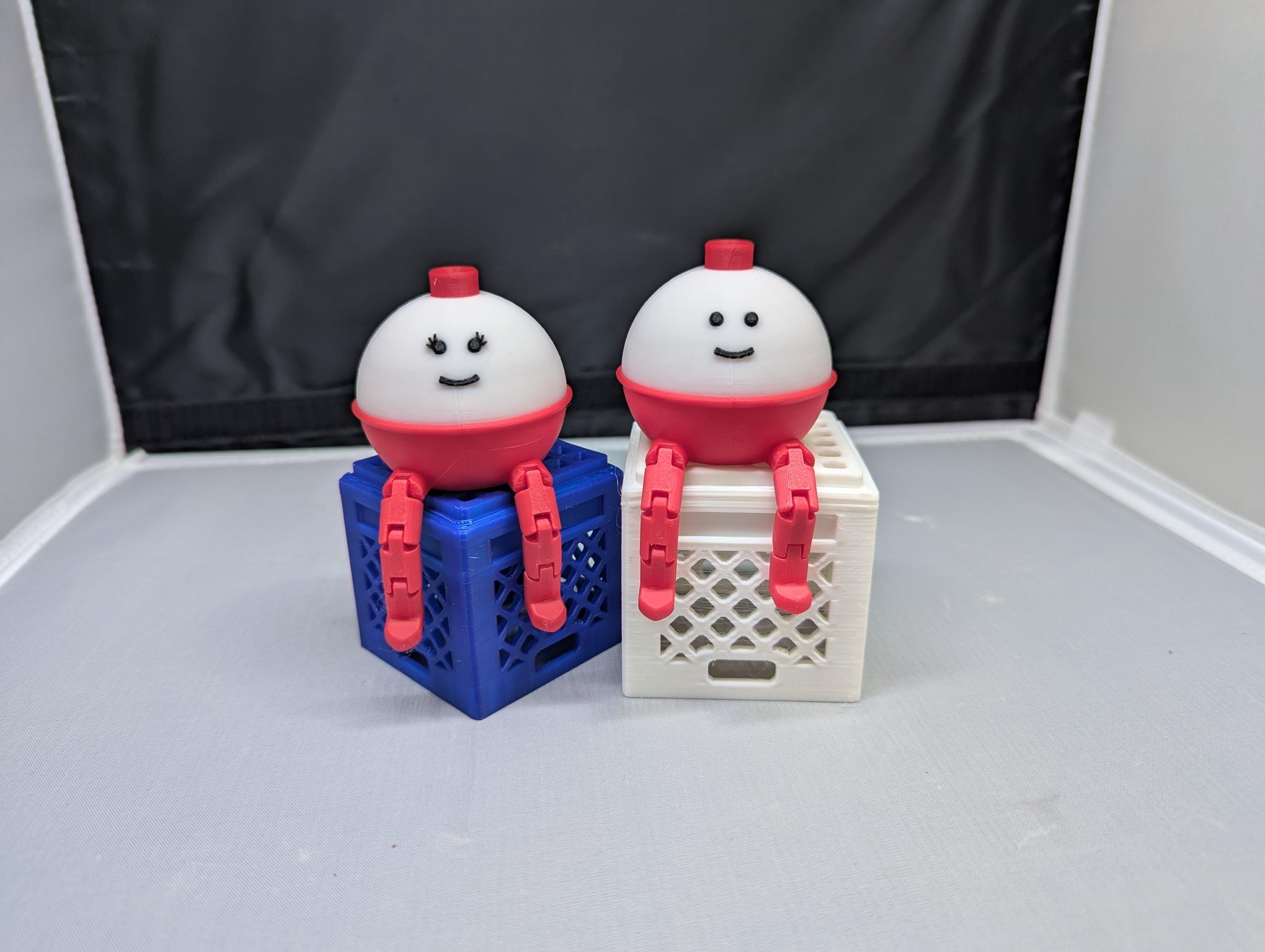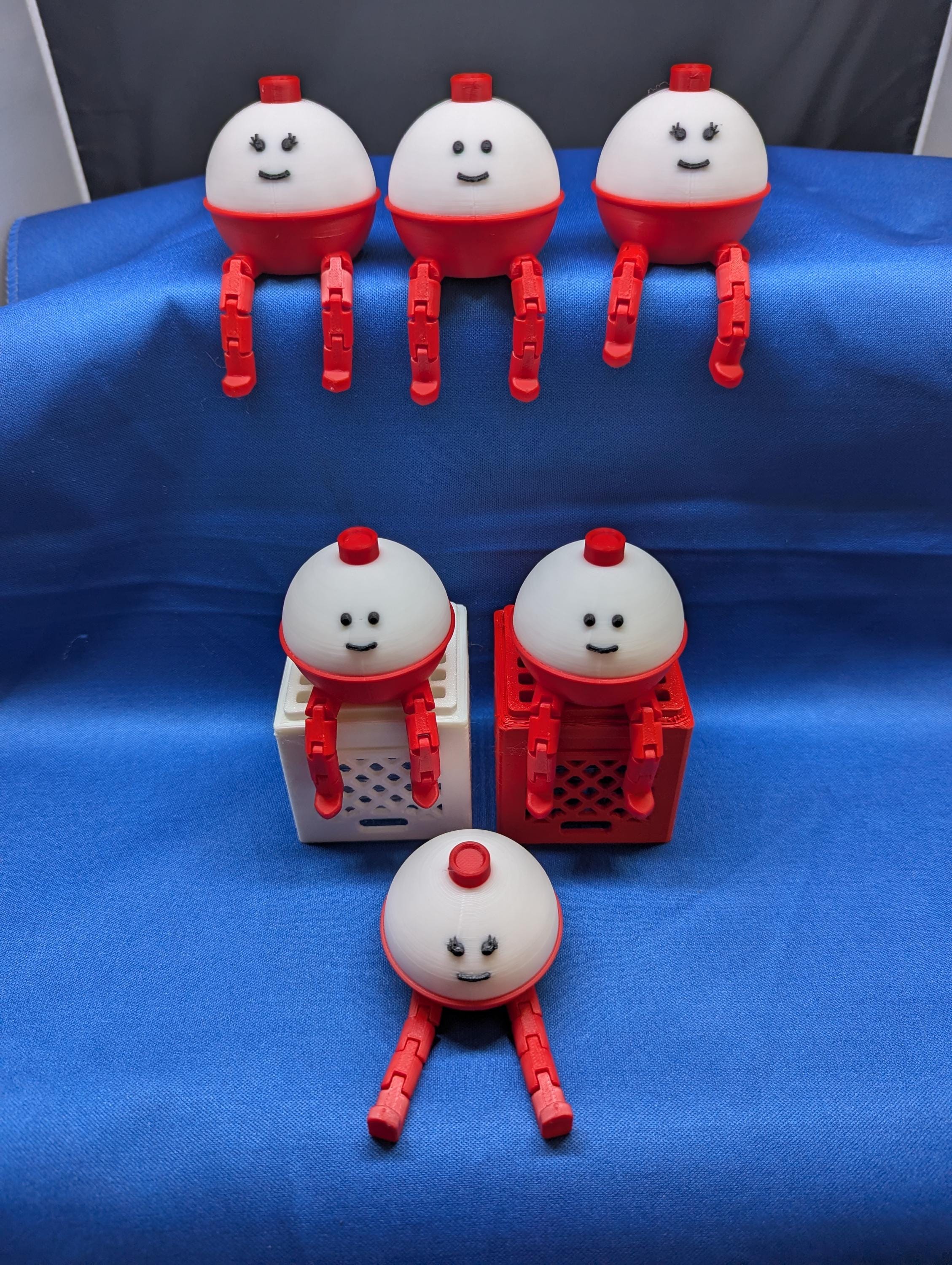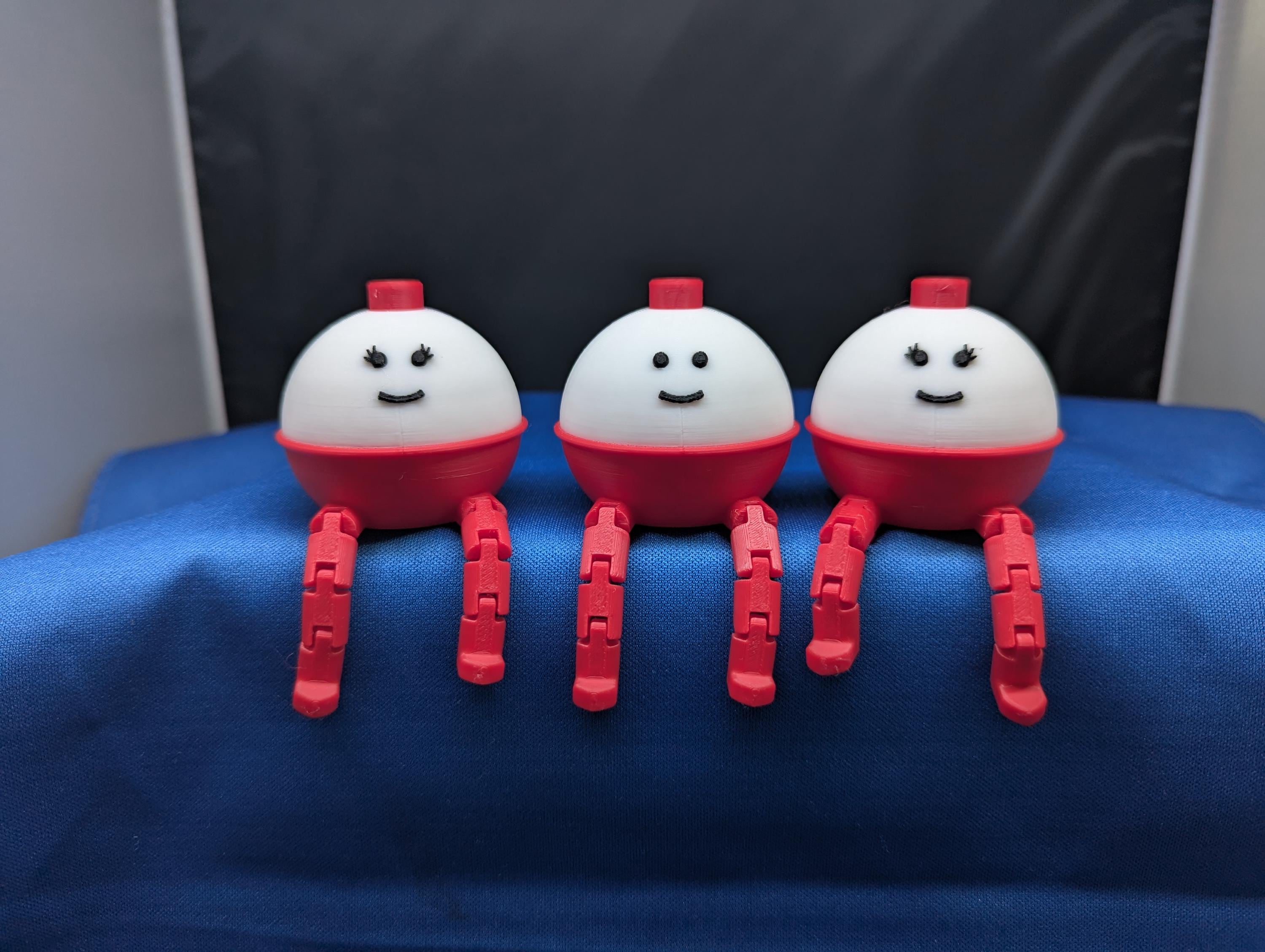 Each bobber shelf sitter has a smiling face and jointed legs. Choose the classic face or add eyelashes for some extra flair. These little pals make a great gift for Father's day or birthdays. And, yes, they float!