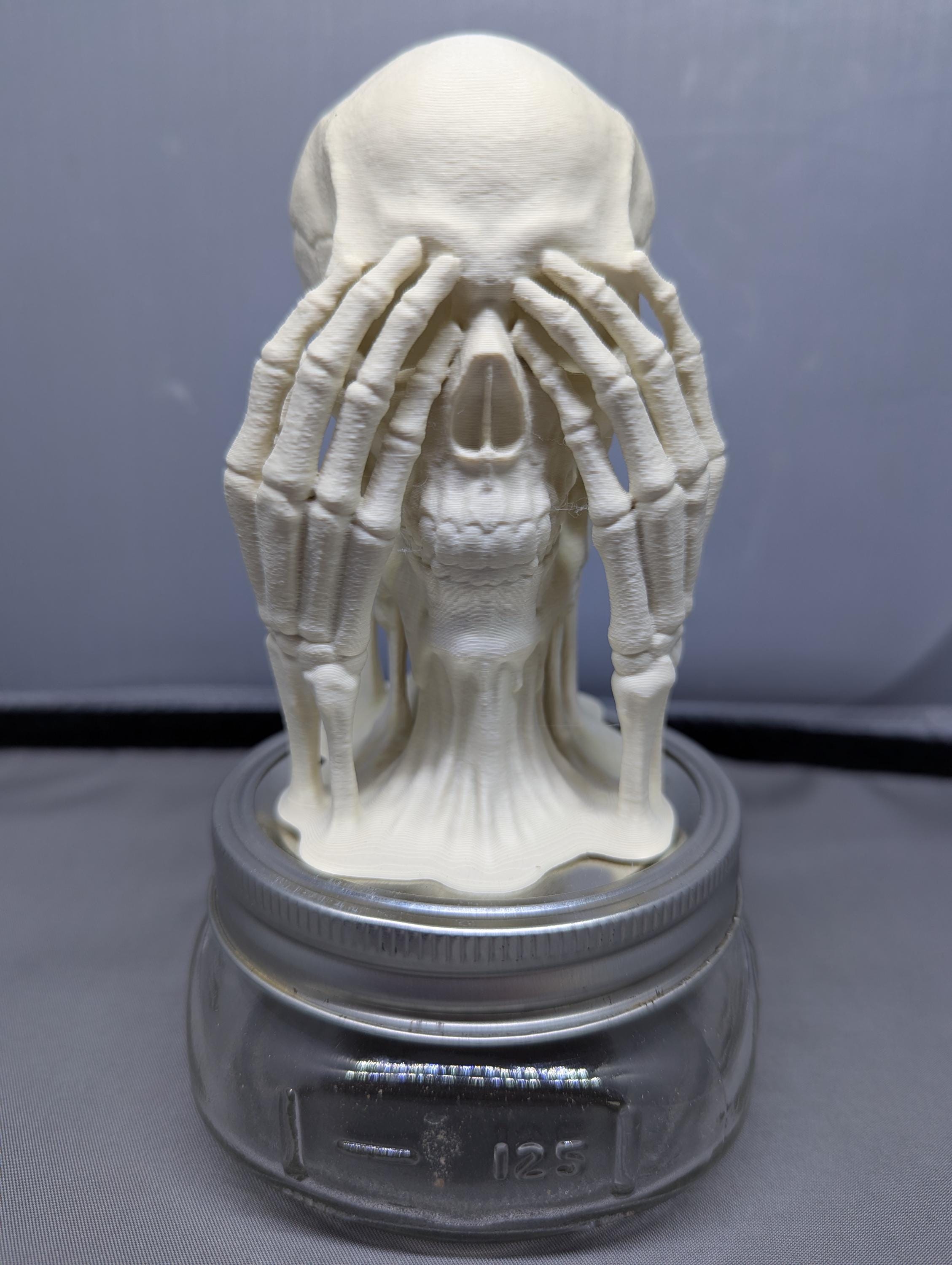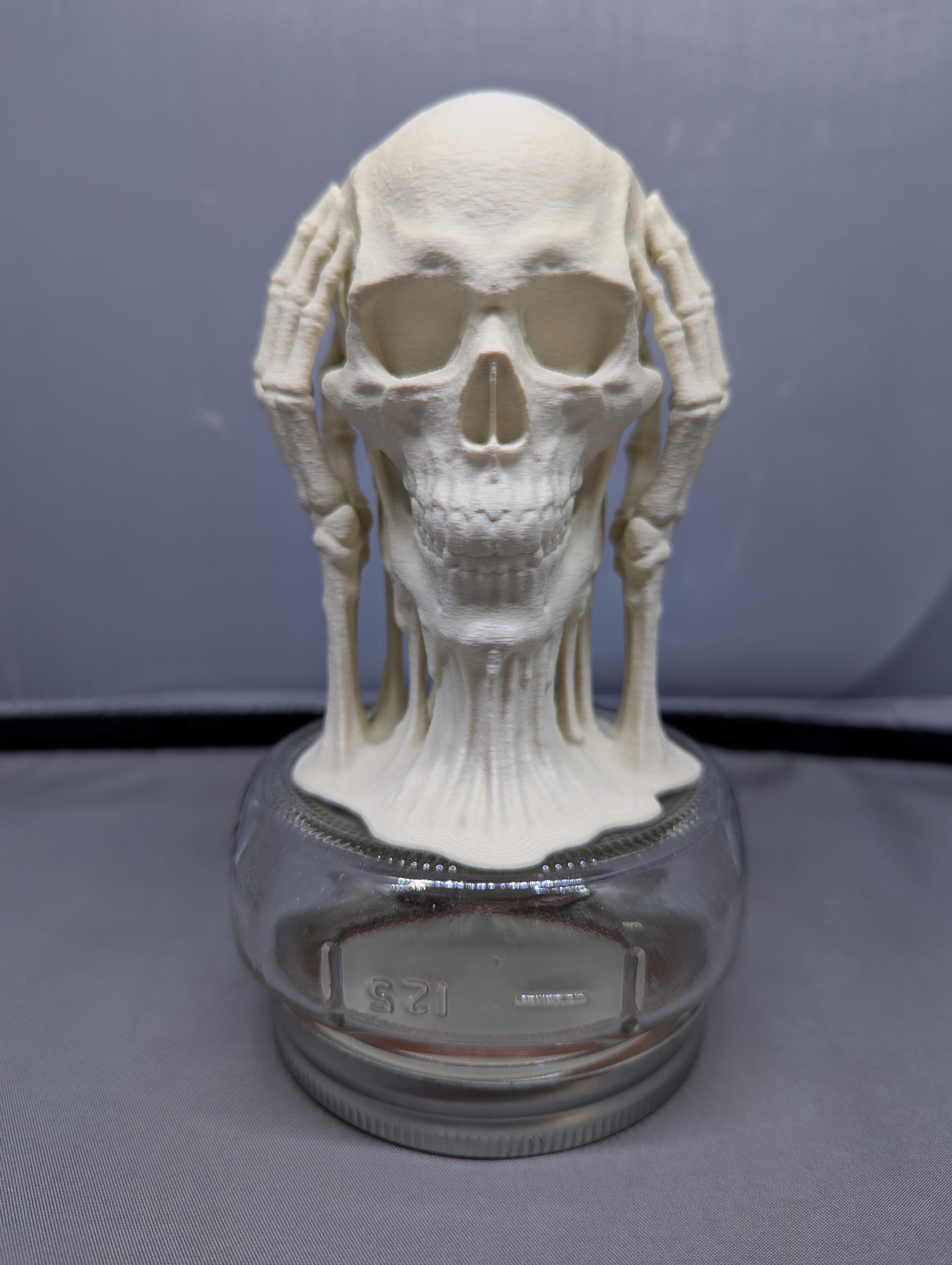 Each skull stands six inches tall and features detailed skeletal hands and skull plates.