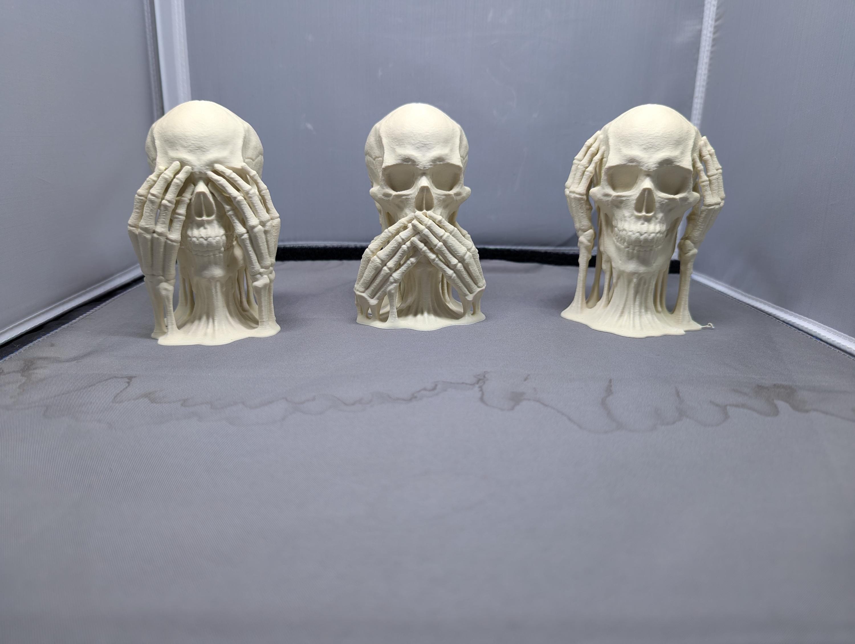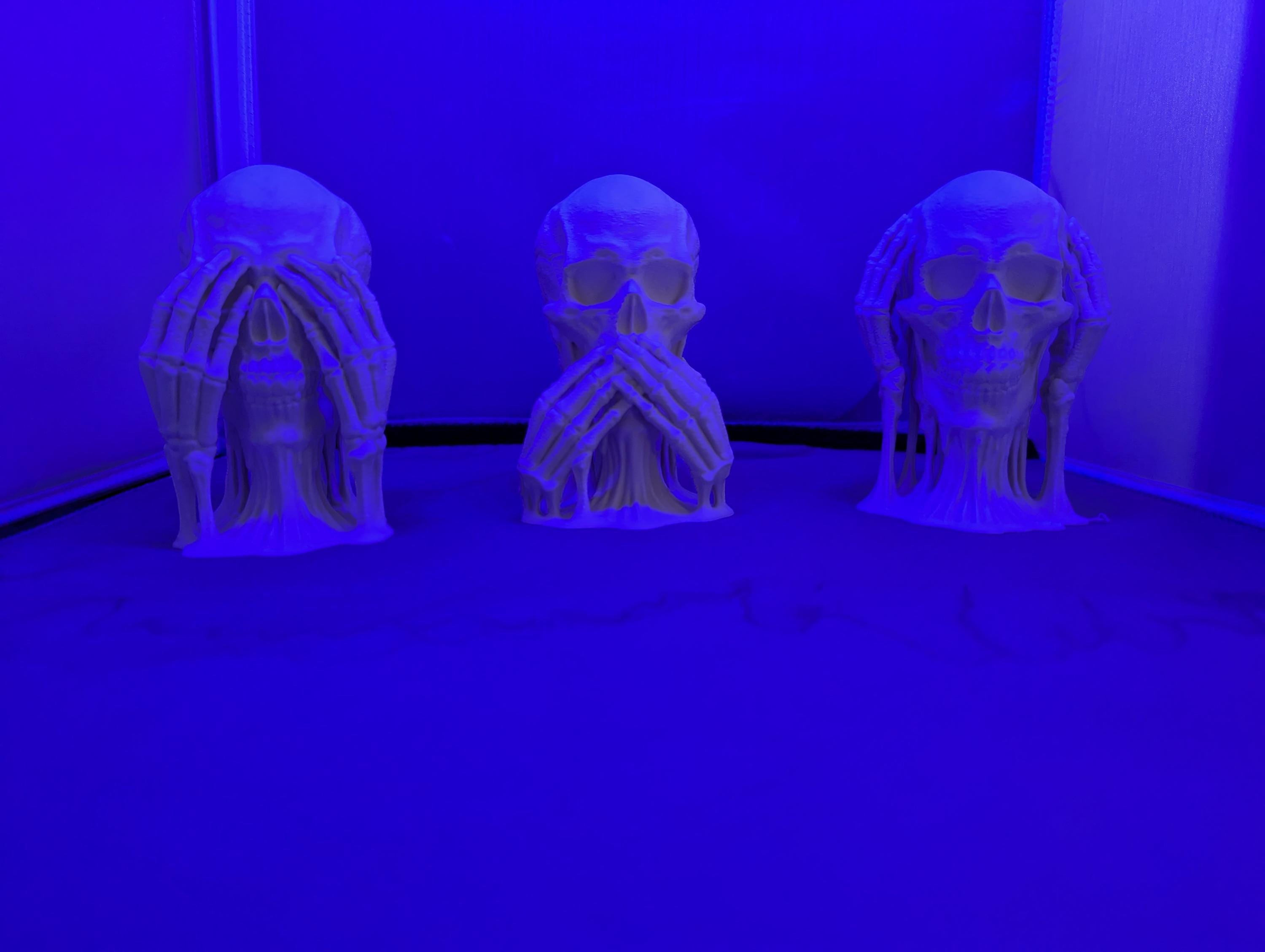 Set of three skulls showing the wisdom of see no evil, hear no evil, say no evil. A perfect addition to your Halloween decor or year-round home decorations.