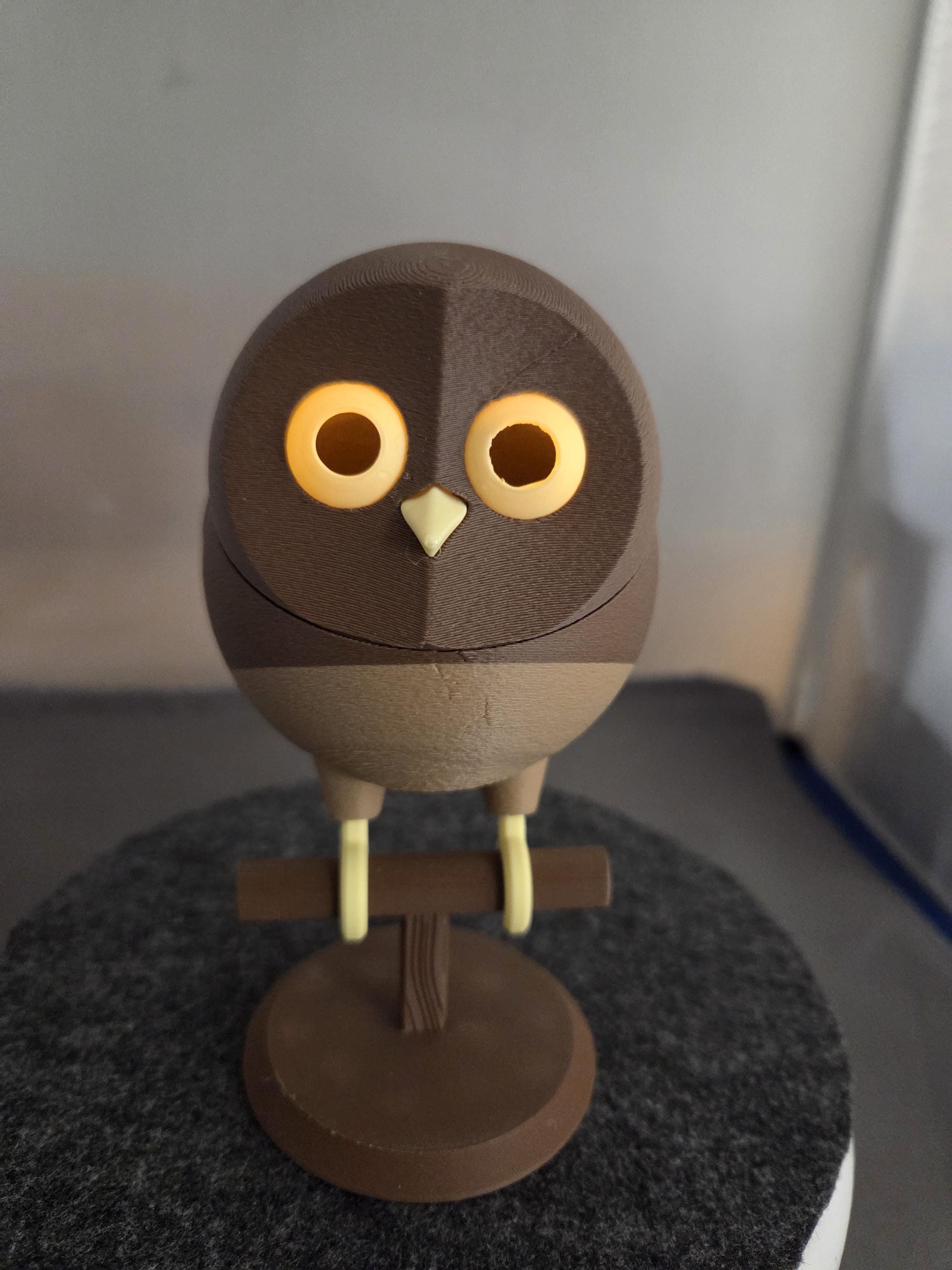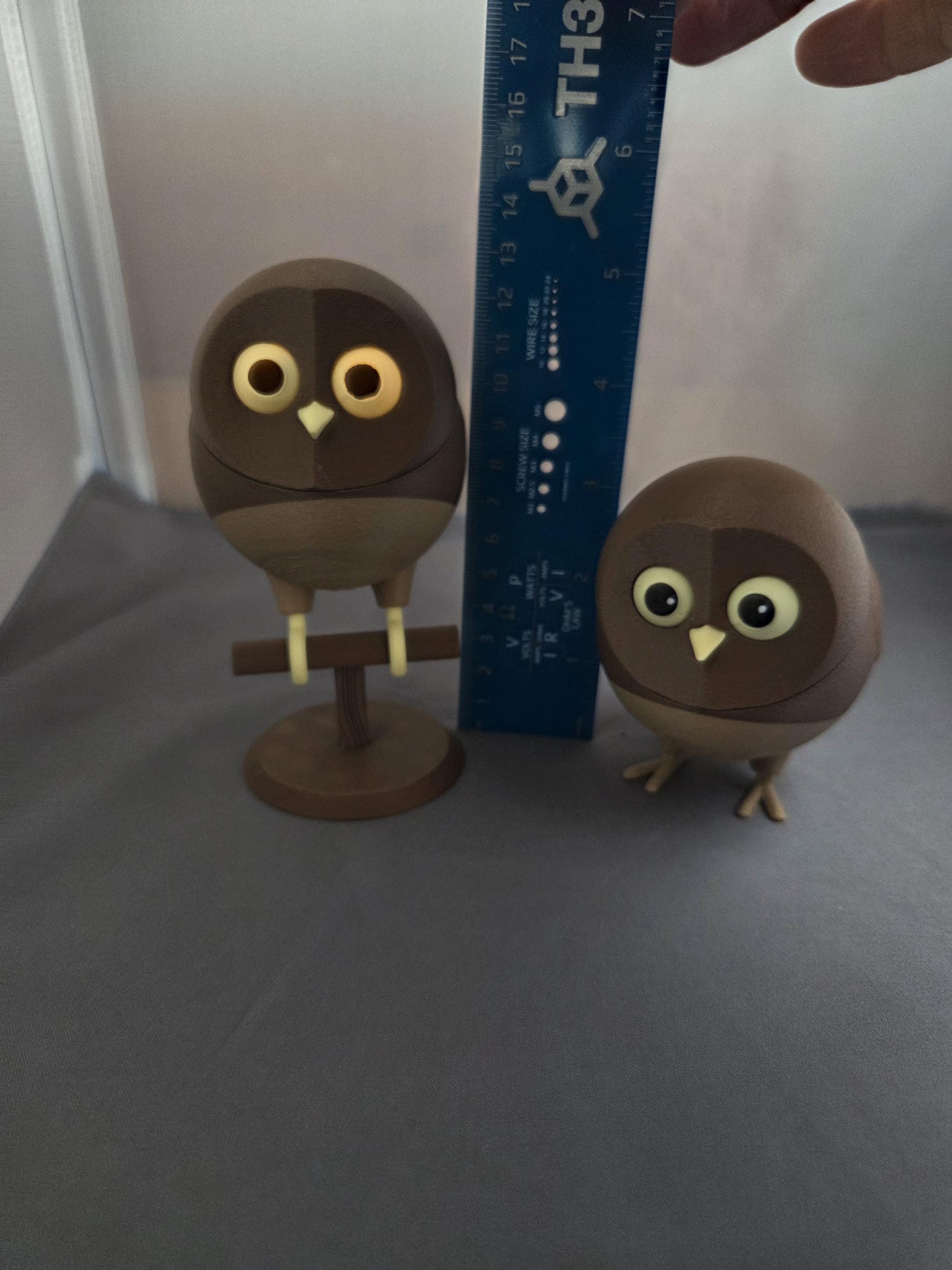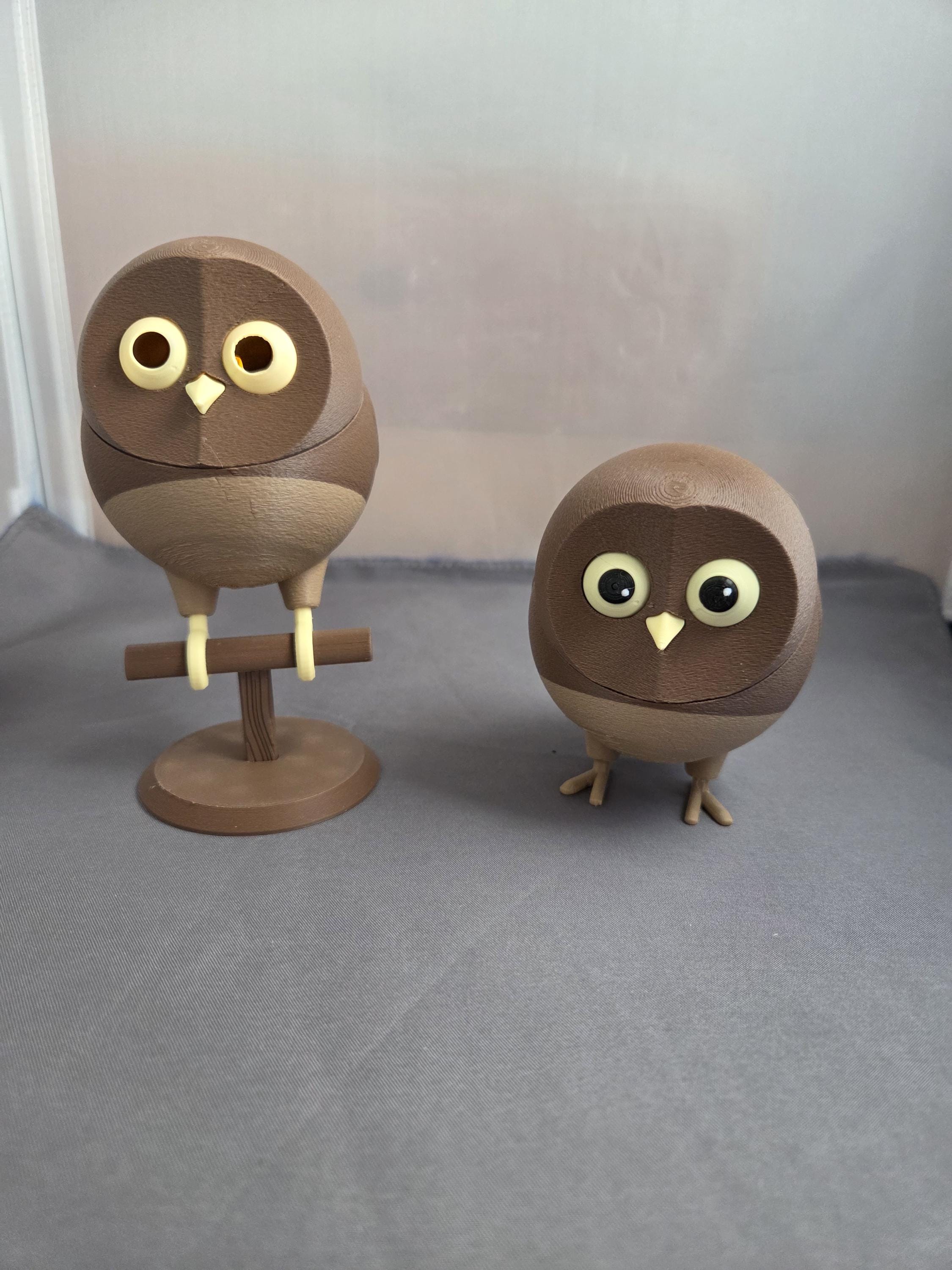 The tabletop bird decoration resembles a fluffy Owl. Choose a freestanding bird with flat feet to stand on a table, with curved feet to sit on the included perch, and an owl sitting on a perch with glowing eyes! Tea light included. (note: freestanding bird does not come with perch)
