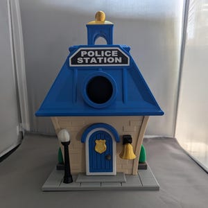 Highly detailed Fire Station bird house offers a secure resting place for birds and eggs. Comes with a mounting bracket to easily secure to a tree or post.