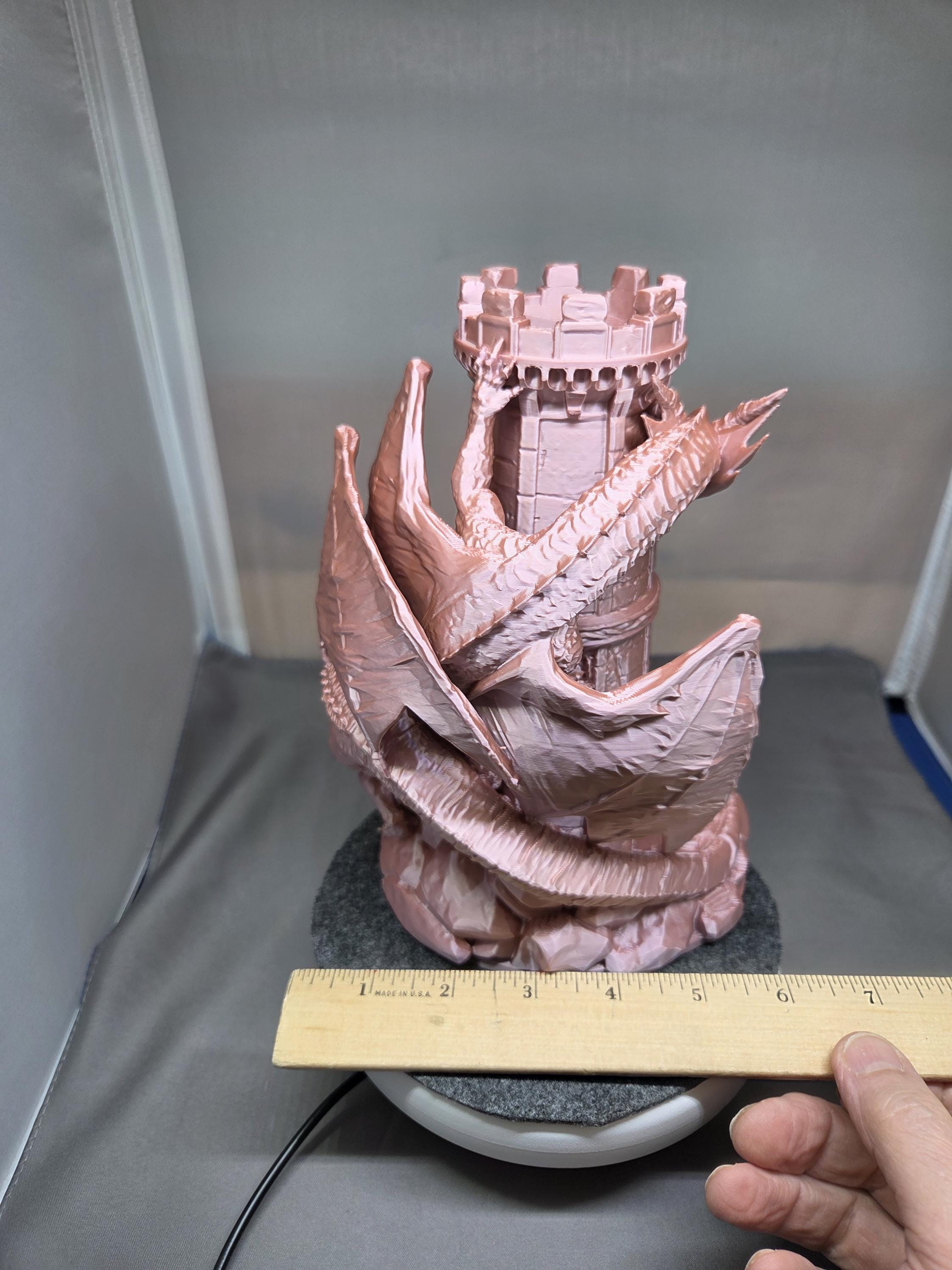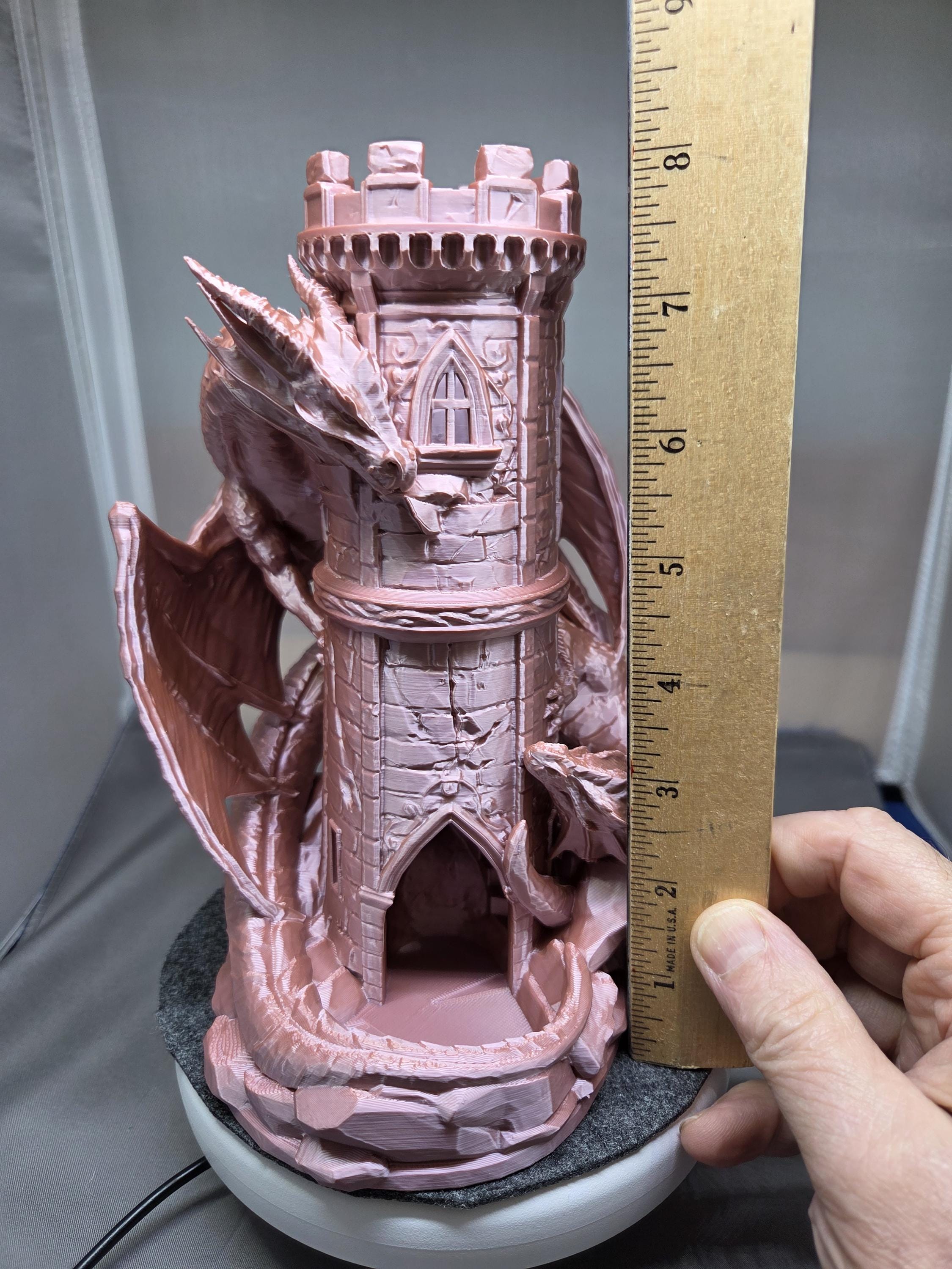 -Built for the Long Haul: Crafted from durable, eco-friendly PLA to survive even the longest campaigns. The Specs: -Dimensions: 8" H x 6" W x 6" D -Material: Premium Biodegradable PLA -Design: High Fantasy Dual-Dragon Motif