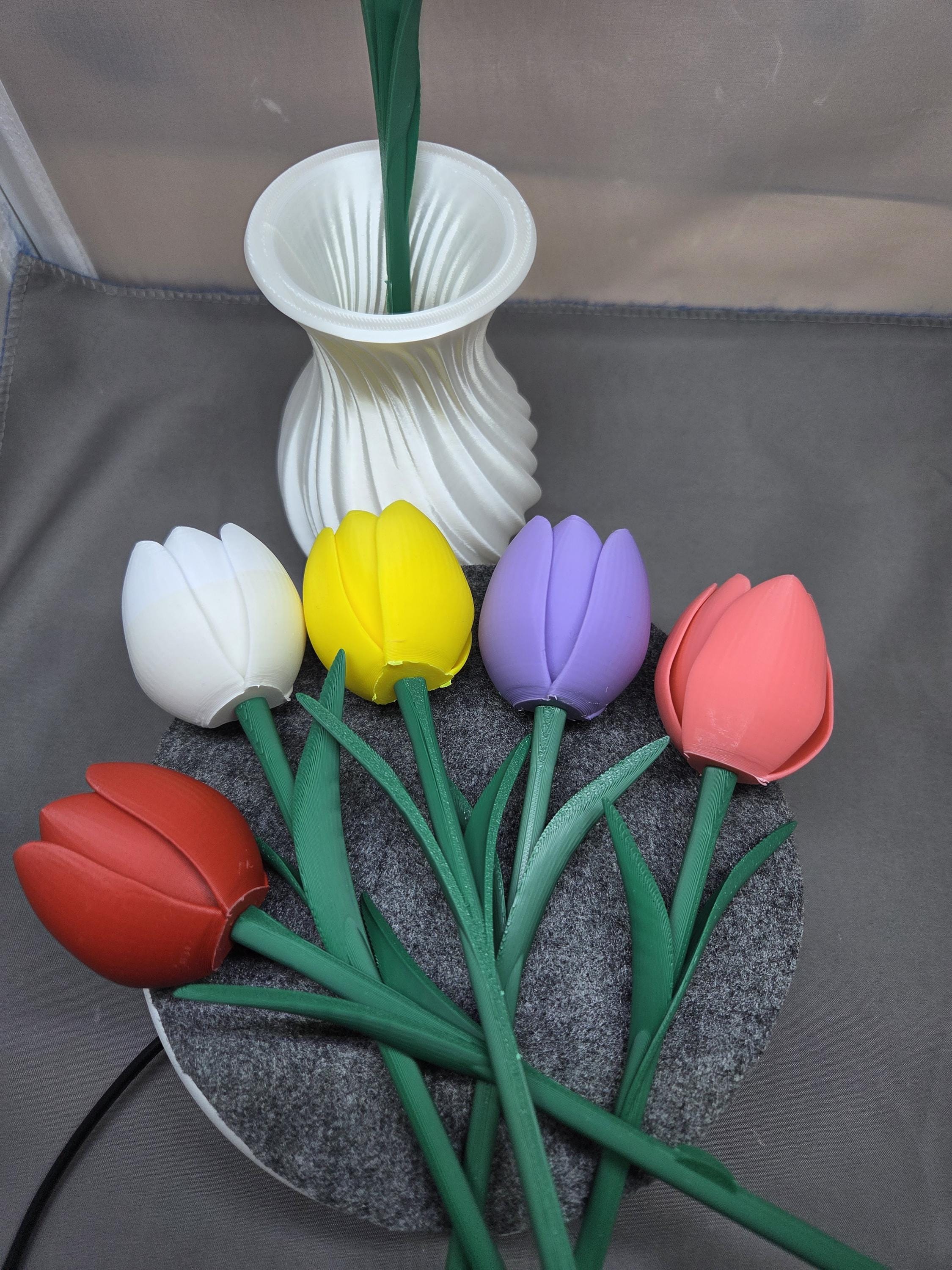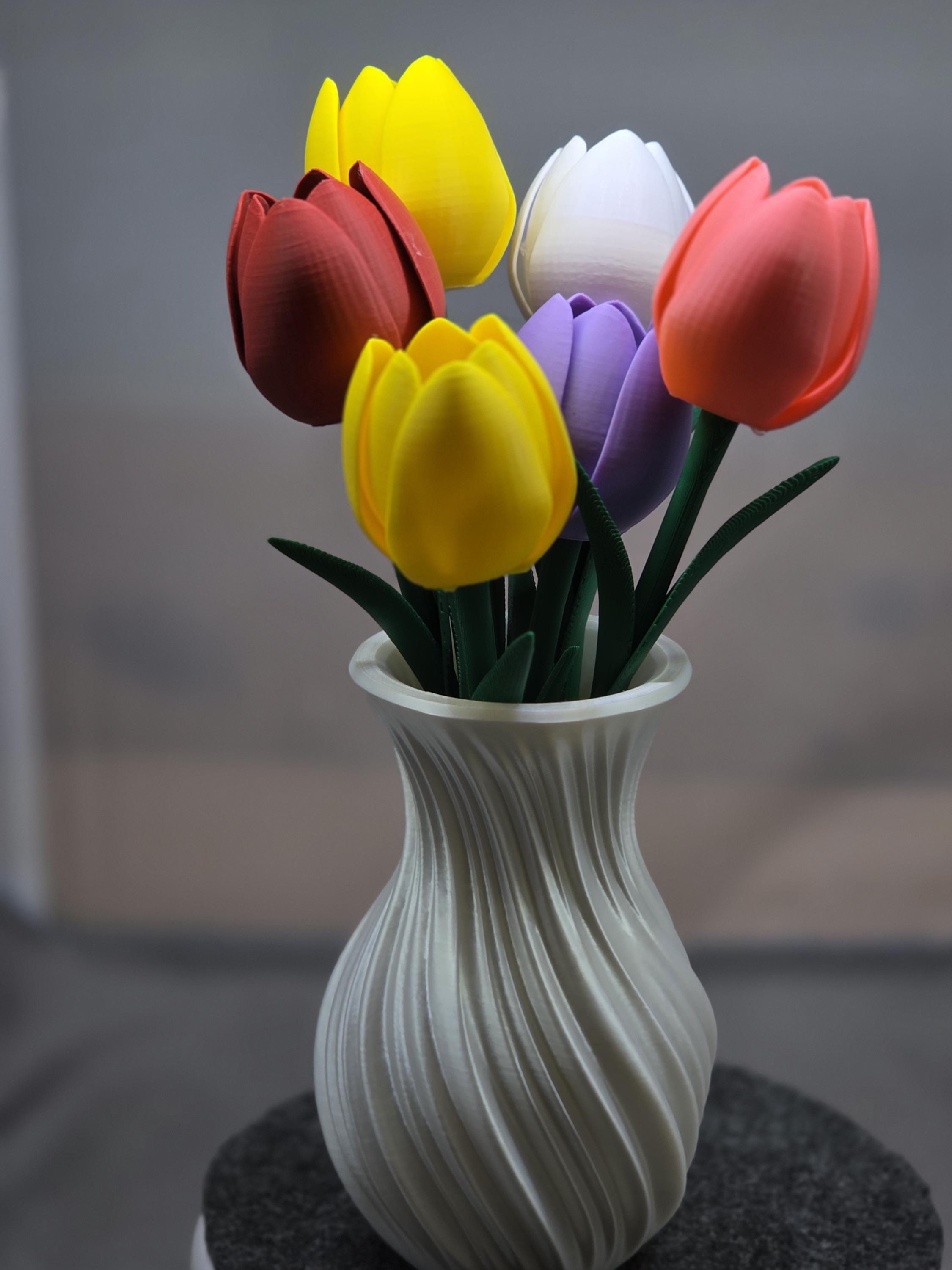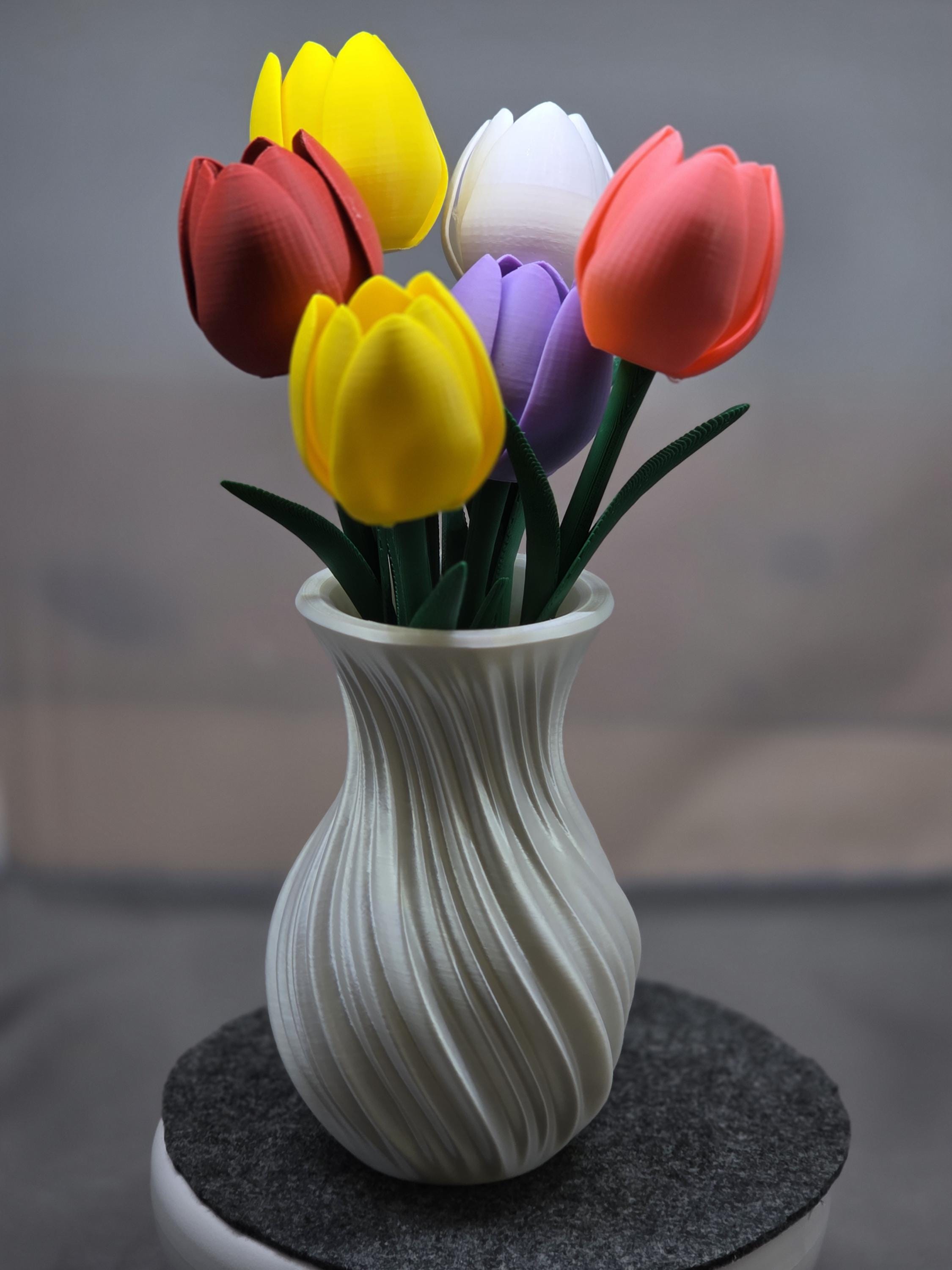 Everlasting blooms for effortless romance. These 3D-printed tulips offer a permanent, mess-free alternative to traditional bouquets—ideal for anniversaries, Valentine's Day, or a thoughtful "just because" gesture. It’s a stylish, low-maintenance flex that proves your affection doesn't have an expiration date. Includes 6 Tulips and a vase. You can customise the colors of the vase or flowers