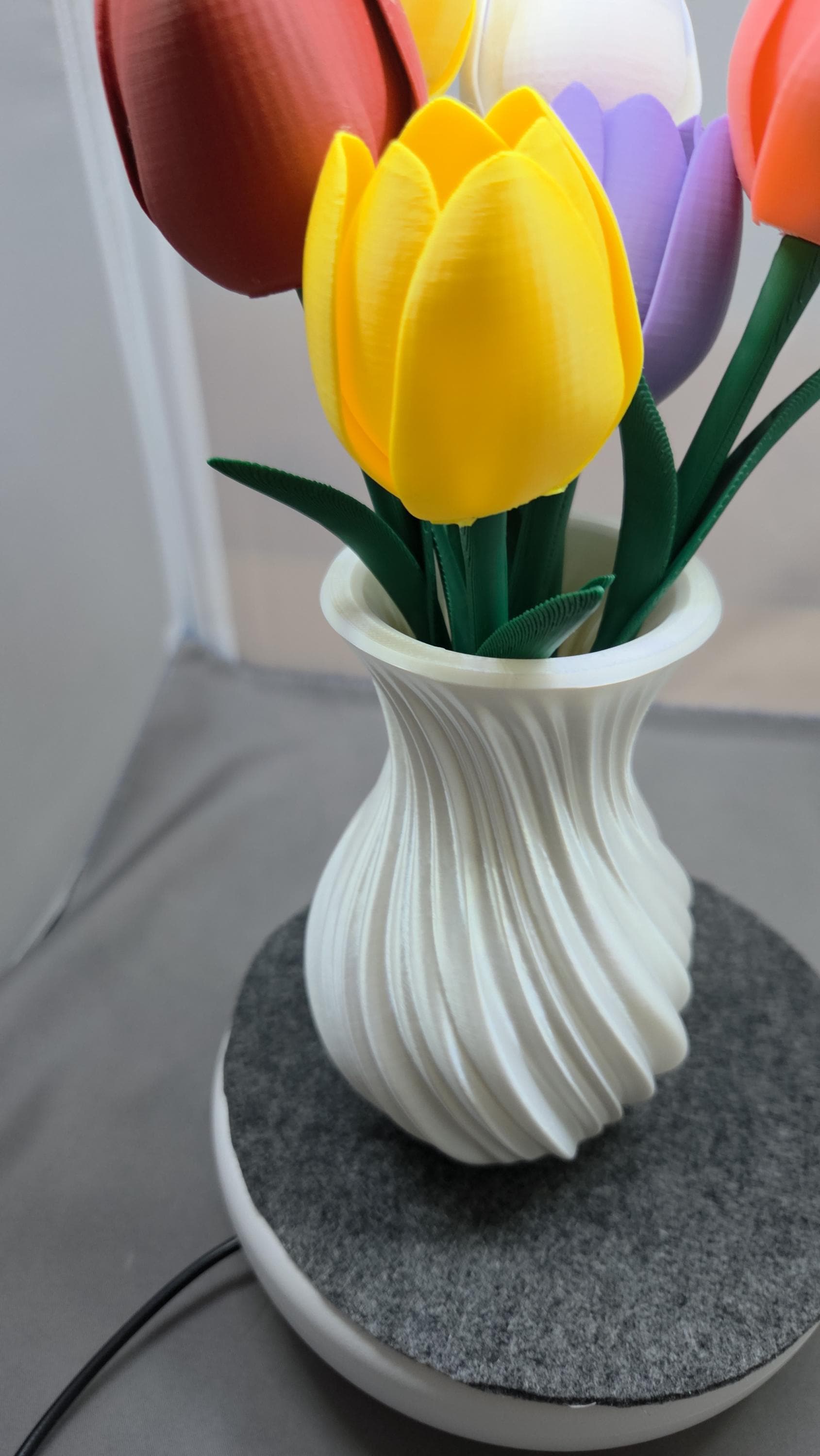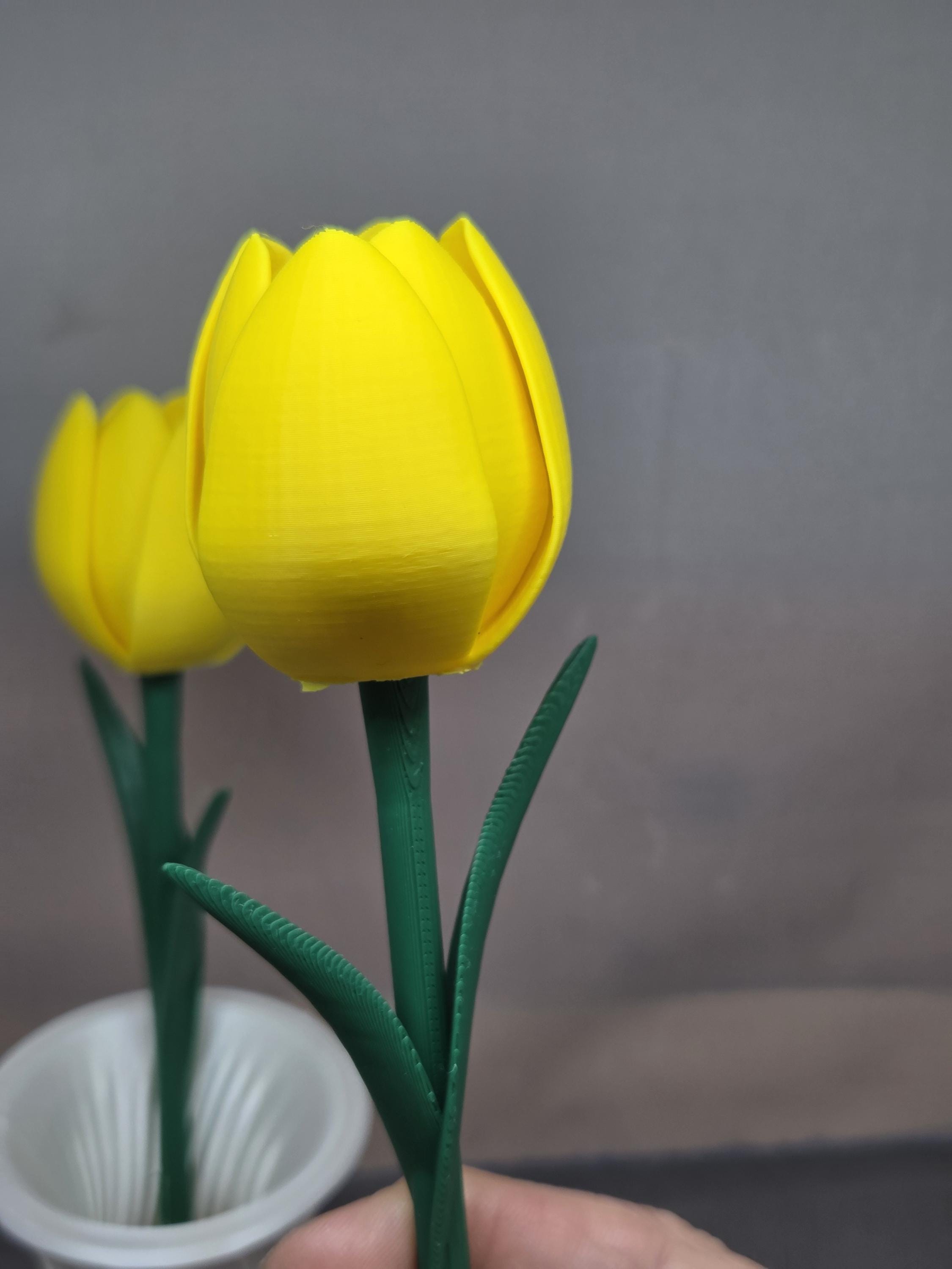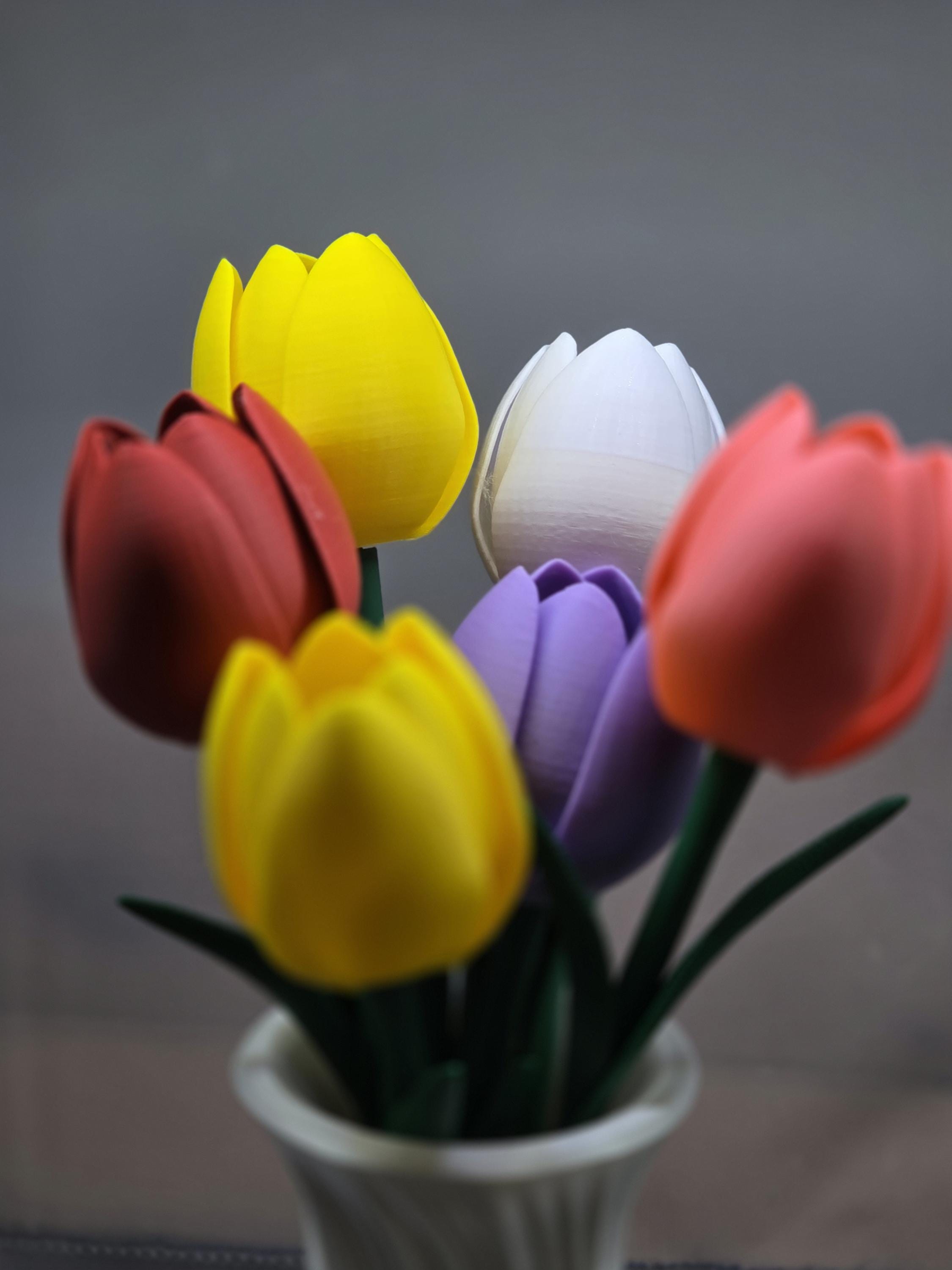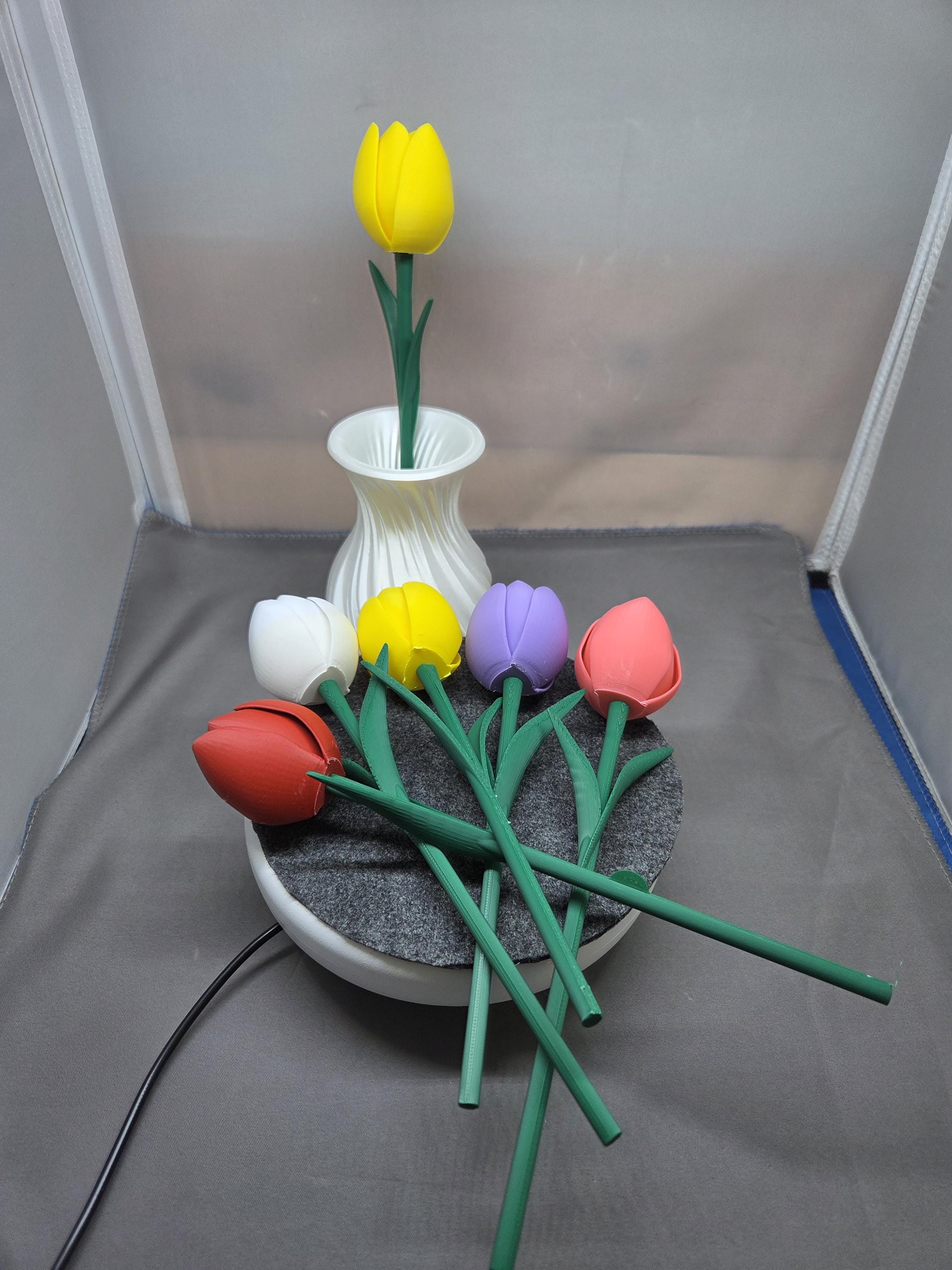 Everlasting blooms for effortless romance. These 3D-printed tulips offer a permanent, mess-free alternative to traditional bouquets—ideal for anniversaries, Valentine's Day, or a thoughtful "just because" gesture. It’s a stylish, low-maintenance flex that proves your affection doesn't have an expiration date. Includes 6 Tulips and a vase. You can customise the colors of the vase or flowers